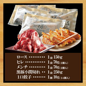 鹿児島県産黒豚使用 ロースカツ ヒレカツ メンチカツ 黒豚コマ切れ 黒豚一口餃子 送料無料 ! ◇内容量・サイズ◇ ロース約150g×1(ソース30g付)、ヒレ約70g×2(ソース30g付)、メンチ約90g×2(ソース30g付)、コマ切れ1P250g、黒豚一口餃子1P 1個10g×14個入り(餃子のタレ付き) ◇原材料◇ ロース(黒豚ロース肉、パン粉、小麦、卵、食用植物油、食塩、)ヒレ(黒豚ヒレ肉、パン粉、小麦、卵、食用植物油、食塩、)メンチ(鹿児島産黒豚ひき肉、玉葱、小麦、パン粉、卵、食用植物油、調味料、香辛料(ブラックペッパー)、塩、うま味調味料) 黒豚こま切れ(鹿児島県産黒豚モモ肉、ウデ肉) 一口餃子(野菜(キャベツ、玉葱、ニラ、ねぎ、ニンニク)豚肉、豚・鶏エキス、食塩、ごま油、鰹エキス、醸造酢、砂糖、料理酒、こしょう、みりん、椎茸エキス、唐辛子、コーンスターチ、皮(小麦粉、植物油脂、粉末油脂、食塩)調味料(アミノ酸等)、原材料の一部に乳、大豆を含む) ◇調理方法◇ 同梱のレシピにてご案内しております ◇賞味期限◇ 冷凍3ヶ月 ◇配送方法◇ 冷凍 ◇配送日・配送時間◇ 注文から3日〜5日後発送 ◇お支払い◇ 送料・支払い方法ページを御確認ください ◇注意事項◇ 冷凍保存【黒豚ハンバーグ 1個】 【黒豚餃子18個入り】 【黒豚ステーキ 1袋】 【黒豚ロースしゃぶ肉 500g】 【サイコロステーキ】 【大人気 ドレッシング】 【黒ぶたバラしゃぶ肉 500g】 【黒豚ロールステーキ】 【かごしま肉まん 黒ぶた侍】